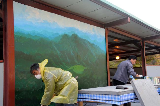천진암 성지 홍보관 게시판 페인트 작업(능평본당 구도회 홍대 교수 봉사)2012.10.28