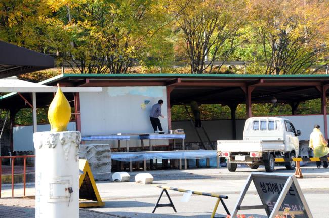 천진암 성지 홍보관 게시판 페인트 작업(능평본당 총회장 외 신자들 봉사)2012.10.29