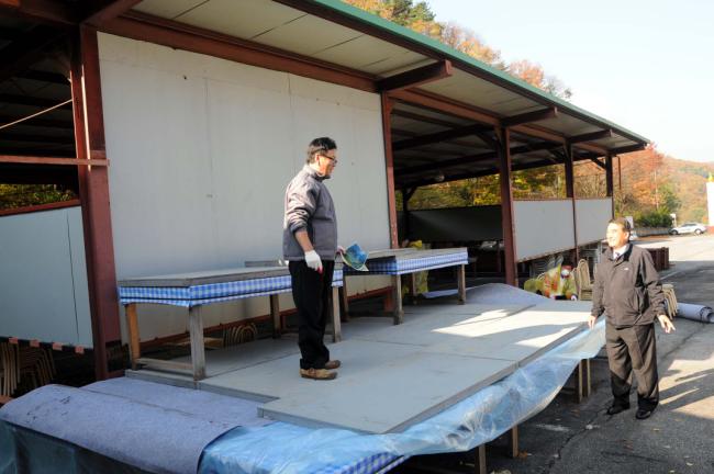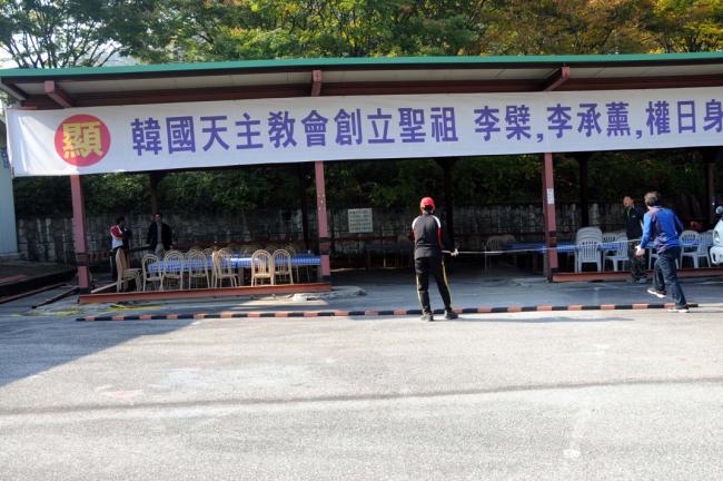 천진암 성지 홍보관 게시판 자재(능평본당 총회장 외 신자들 봉사)2012.10.20
