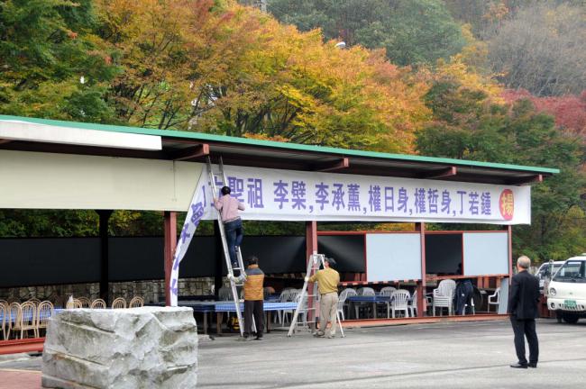 천진암 성지 홍보관 게시판 작업(능평본당 총회장 외 신자들 봉사)2012.10.21