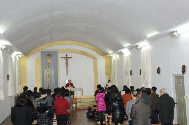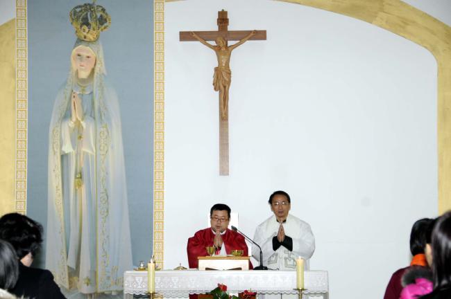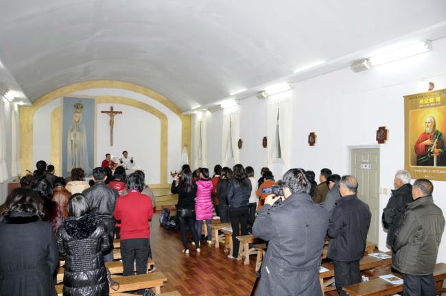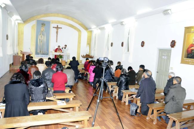 中國, 녕파교구 신포성당 44명, 중국 방위평 신부 복음 봉독(중국 방위평 신부, 길림교구 소속 조광택 신부), 천진암 성지순례(2012.11.28)