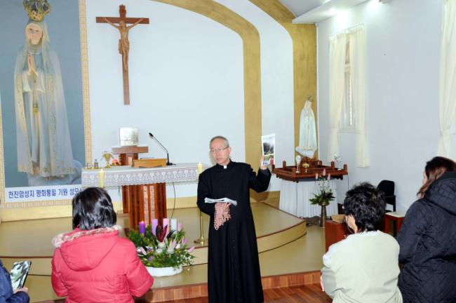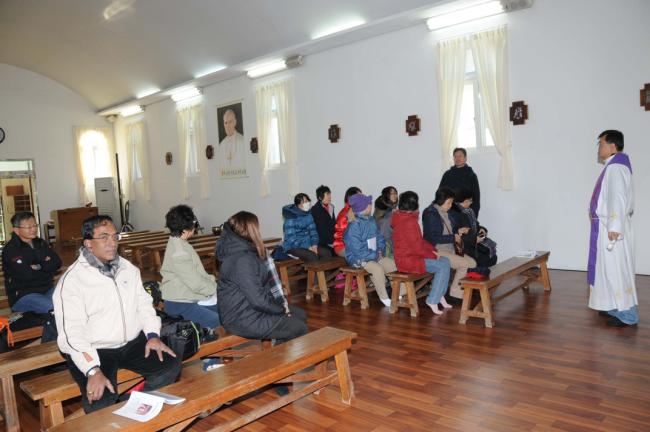 말레이시아 신자(신부1명, Rev. Fr. Lim Clement Joshua)16명, 천진암 성지 순례(2012.12.04)(Church Immaculate Conception), 성지 주임 김학렬 신부님의 200여년 전의 이벽성조 독서처에 대한 설명