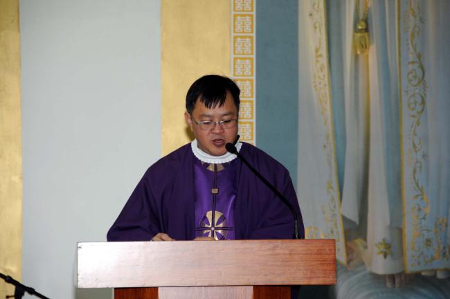 말레이시아 신자(신부1명, Rev. Fr. Lim Clement Joshua)16명, 천진암 성지 순례(2012.12.04)(Church Immaculate Conception), 말레이시아 신부님의 복음 봉독
