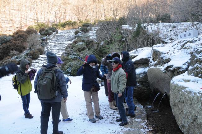 말레이시아 신자(신부1명, Rev. Fr. Lim Clement Joshua)16명, 천진암 성지 순례(2012.12.04)(Church Immaculate Conception), 참배 후 빙천수를 마시는 말레이시아 신자들