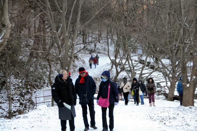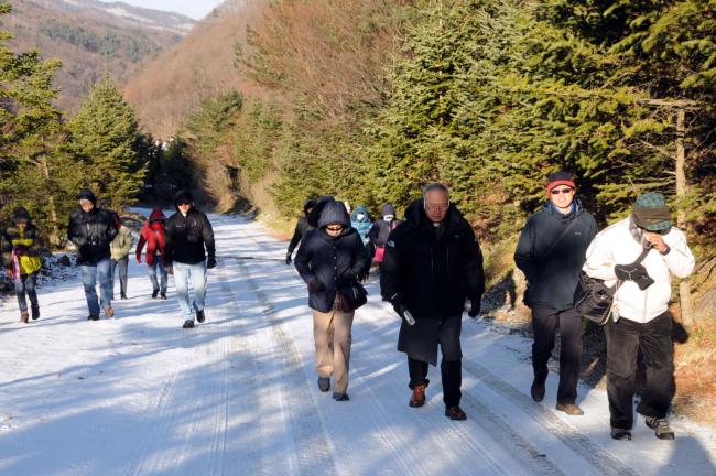 말레이시아 신자(신부1명, Rev. Fr. Lim Clement Joshua)16명, 천진암 성지 순례(2012.12.04)(Church Immaculate Conception), 성지 주임 김학렬 신부님의 안내로 묘역참배하러 가는 길
