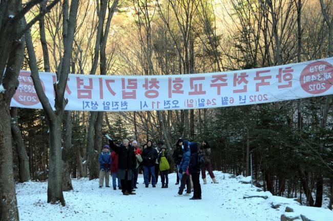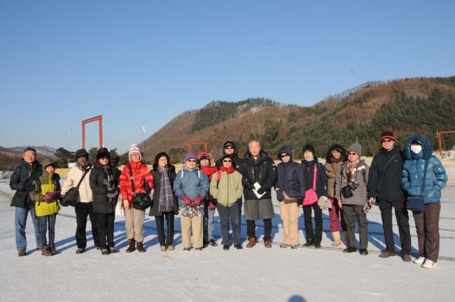 말레이시아 신자(신부1명, Rev. Fr. Lim Clement Joshua)16명, 천진암 성지 순례(2012.12.04)(Church Immaculate Conception),성지 주임 김학렬 신부님의 안내로 묘역참배하러 가는 길(대성당 터에서 기념사진)