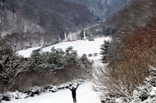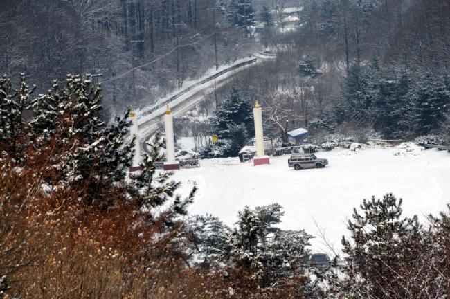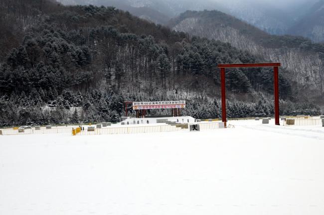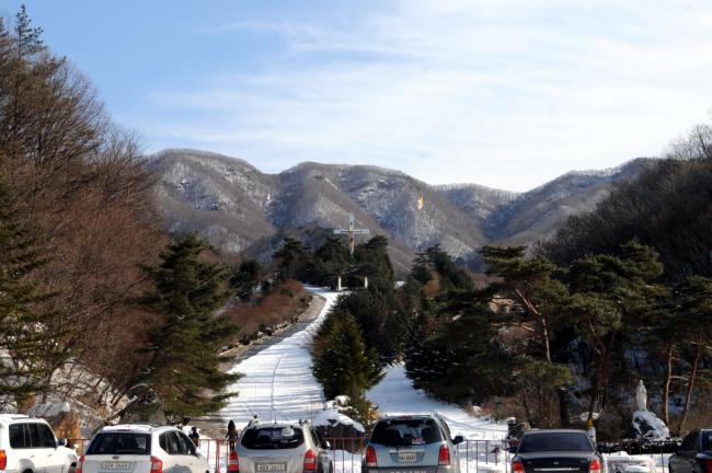 천진암 성지, 눈풍경(천진암대성당 터에서 내려다 본 성지 정문과 주차장, 2013.01.01)