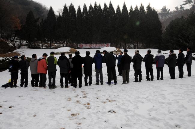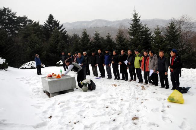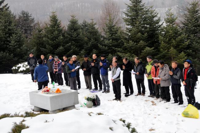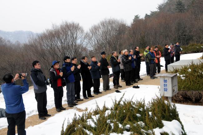 천진암 성지, 2013년 첫번째로 순례오는 단체 순례객(서울, 암사동성당 나눔회 20명 외), 조선교구설립자 묘역을 거쳐 한국천주교회창립성현 5위 묘에서 큰절후 시복시성기도