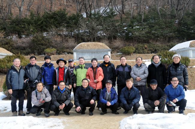 천진암 성지, 매년 첫번째로 순례오는 단체 순례객(서울, 암사동성당 나눔회 20명 외), 조선교구설립자 묘역을 거쳐 한국천주교회창립성현 5위 묘 앞에서 단체기념사진