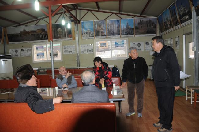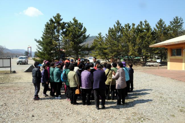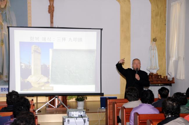 팔로티회 장화기 베드로 신부 답사(해마다 부활절을 지내고, 도보성지순례하는 팔로티회 장베드로 신부님과 신자들, 올해도 4월 3일, 20여명의 신자들과 천진암에서 용문까지 도보성지순례시, 현장답사를 하기위해, 변기영 몬시뇰과 김학렬 신부로 부터 안내설명을 듣고 있다. 2013.03.23)