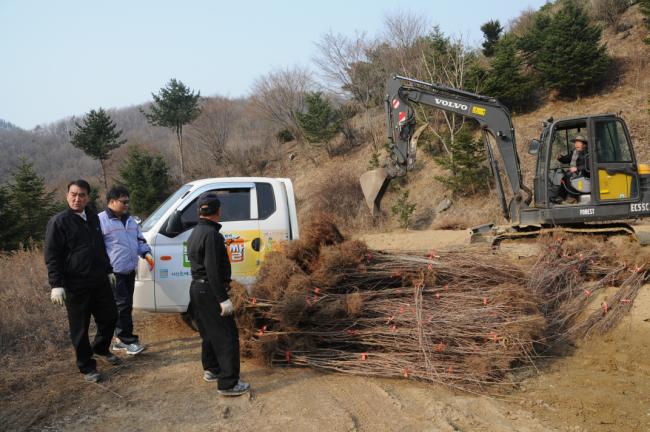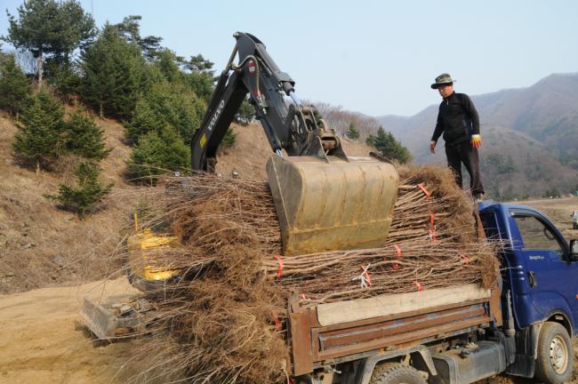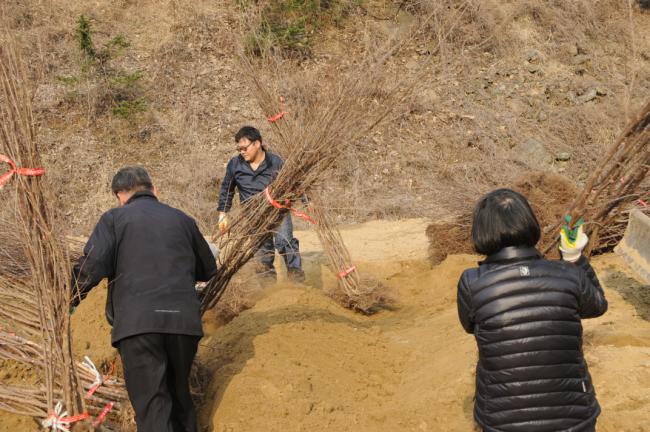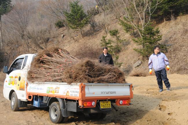 산수유 묘목 서산에서 도착(김해수 요아킴 회장 1,500주 기증, 2031.03.09)