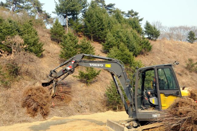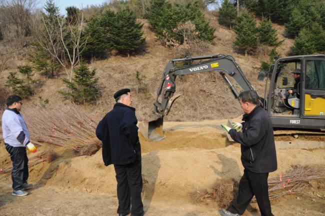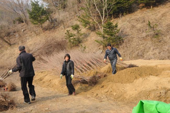 산수유 묘목 서산에서 도착, 임시로 빙천담 묘목밭에 가식함(2013.03.09)