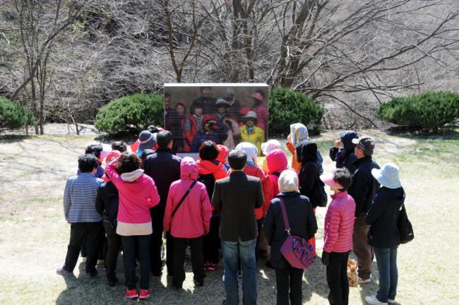 용인 양지성당 성모회 30명, 한국천주교회 창립성현 5위 묘에서 단체 기념사진(2013.04.14)