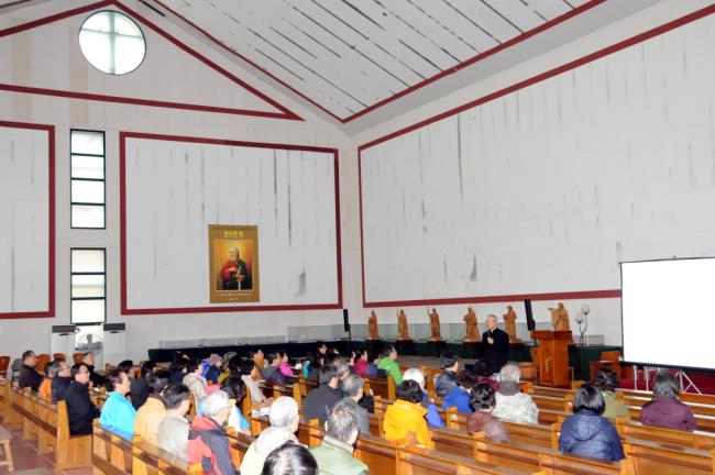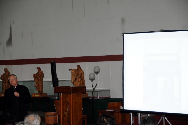 서울, 명동성당 광암회 50명, 서울, 잠원동 성당 ME 모임 17명, 수원 영통성령성당 32명, 용문성당 8명 외, 12시 순례객 미사전, 성지 주임 김학렬 신부, 천진암 강학(2013.04.20)