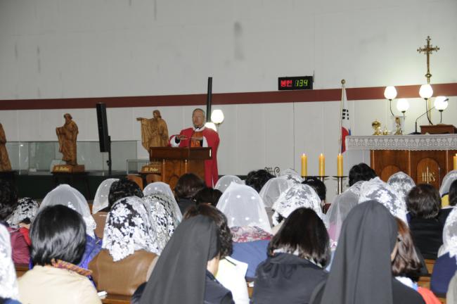 대전, 전민동 성당 버스4대 150명, 천진암 성지순례시, 12시 순례객 미사( 2013.04.26)