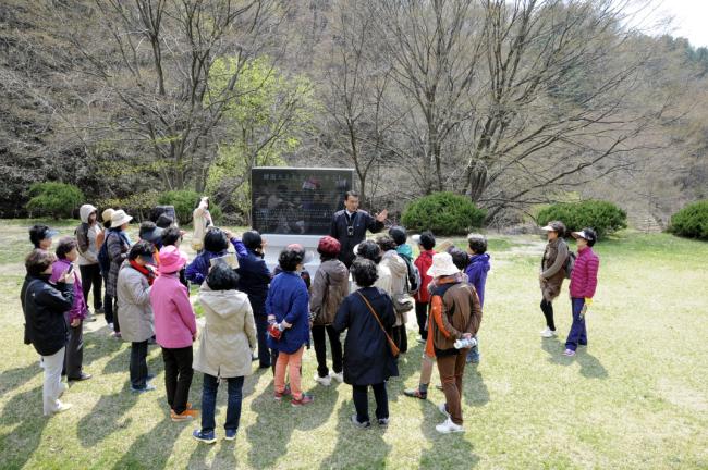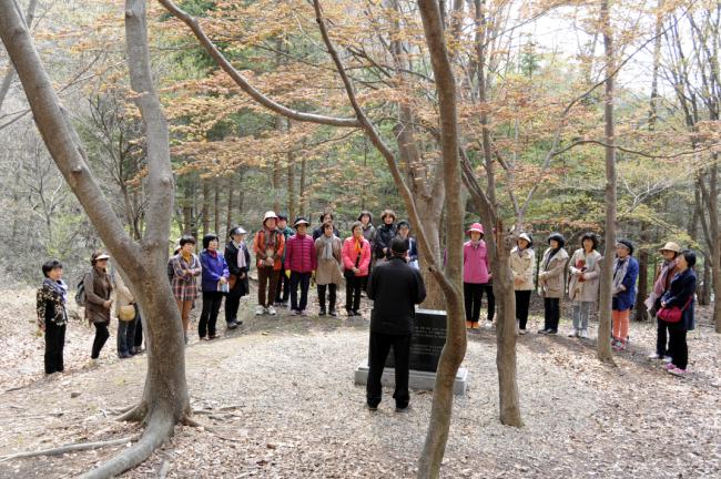 대전, 전민동 성당 버스4대 150명, 천진암 성지순례, 230여년 전에 한국천주교회 창립, 이벽 성조의 독서처를, 성지 박희찬 관리국장이 설명(2013.04.26)