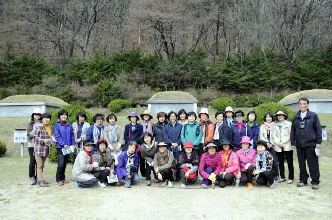 대전, 전민동 성당 버스4대 150명, 천진암 성지순례, 한국천주교회 창립성현 5위 묘 참배 후, 단체 기념 사진(2013.04.26)