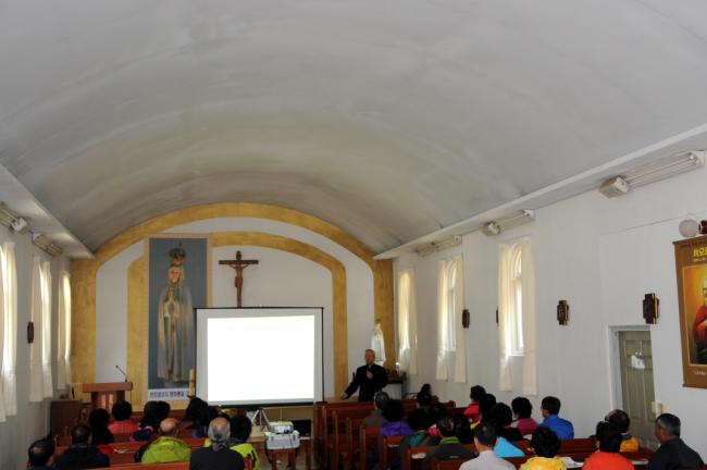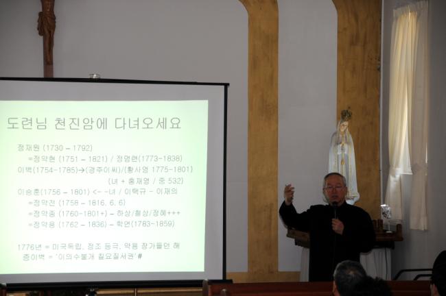 광주대교구, 나주성당 33명 외 천진암 성지 순례, 낮12시 순례객 미사전에, 성지주임 김학렬 신부님의 천진암 강학(2013.04.27)