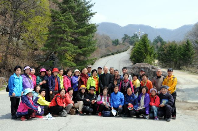 광주대교구, 나주성당 33명 외 천진암 성지 순례, 한국천주교회 창립성현 5위 묘 참배 후, 단체기념사진(2013.04.27)