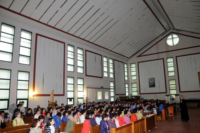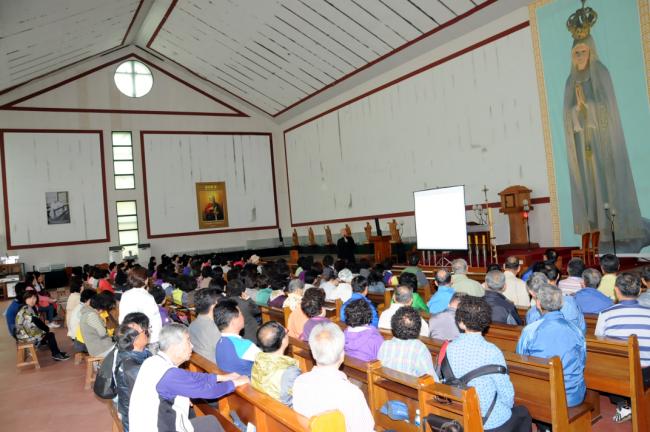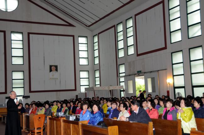 인천 부개동 꾸리아, 인천 화수동성당, 수원 범계성당 외, 천진암 성지 순례(2013.05.12, 주일), 주일 낮 12시 순례객 미사 전에, 성지 주임 김학렬 신부의 천진암 강학