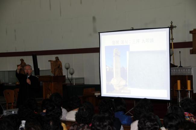 서울, 수서성당 꾸리아 외, 낮 12시 순례객 미사전에, 성지 주임 김학렬 신부의 천진암 강학(2013.05.21)