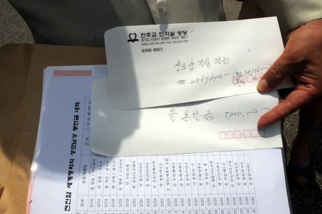 수원 던지실 성당, 주임 김학무 신부님과 천진암 성지 성모상 성금 명단(06.17)