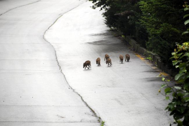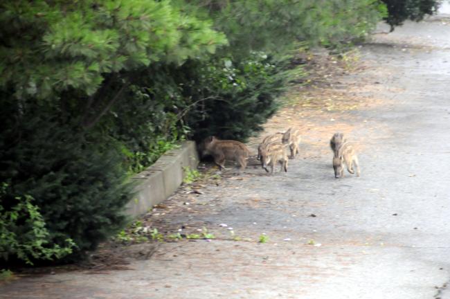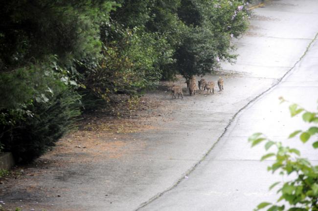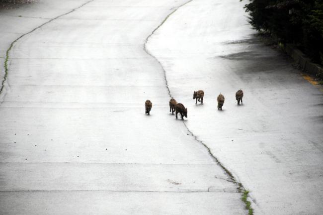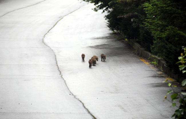 천진암 성지에 순례나온 멧돼지 6형제(2013.08.04, 오전 6시14분)