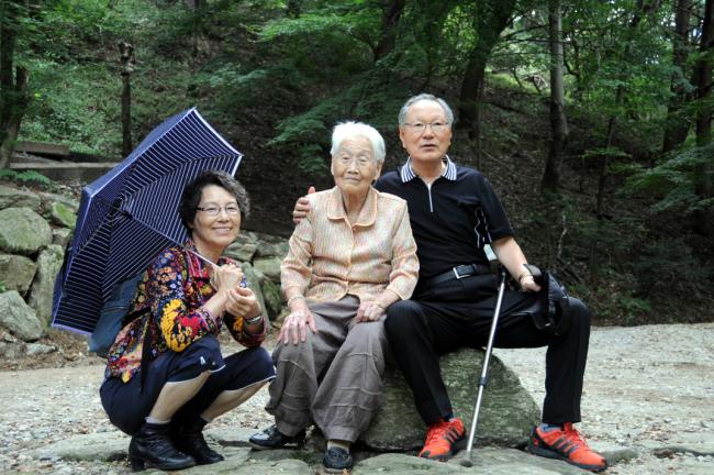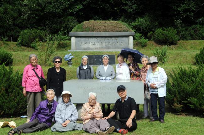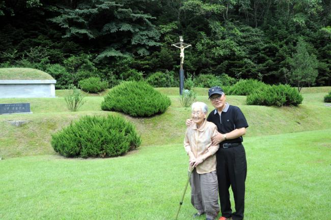 경북 군위 안나의 집, 천진암 성지 순례, 한국천주교회창립성현5위 묘 참배(좌측, 92세의 수산나 할머니, 2013.09.03)