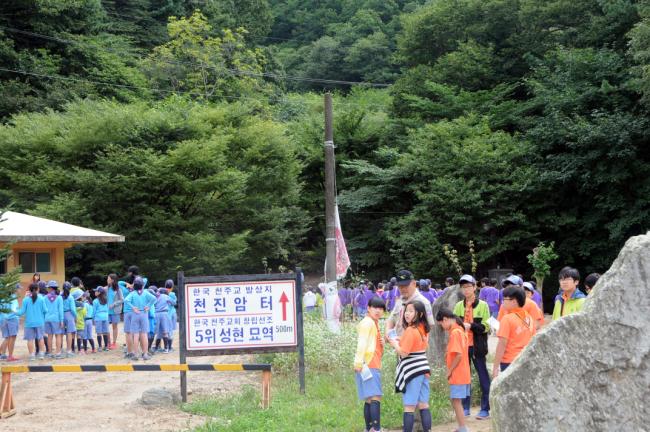 송파지구 연합회 연합 야영대회 장평초등학교 스카우트대원 850명, 천진암 성지 순례(2013.09.07)