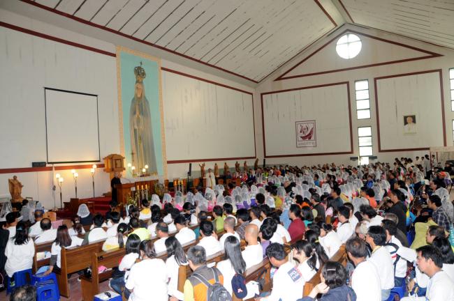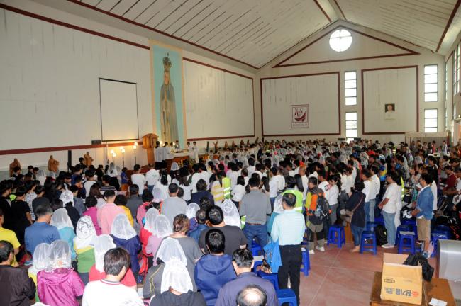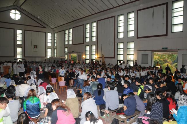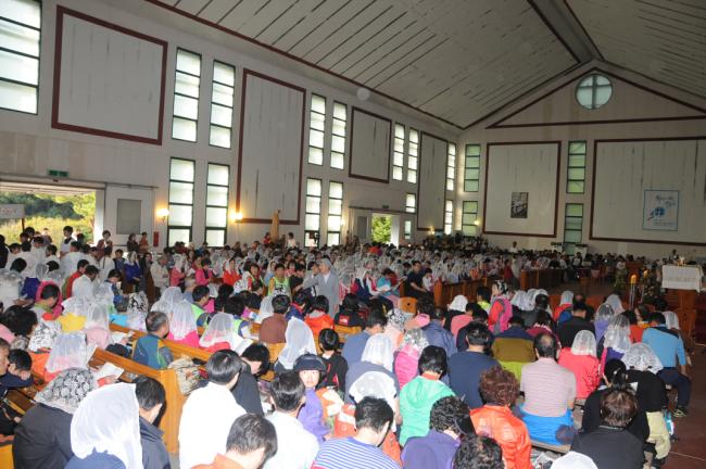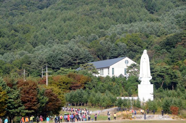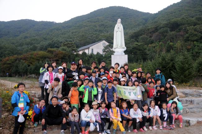 수원 광주성당 설립 55주년 기념, 천진암 성지 전신자750여명, 20Km 도보 성지순례, 미사후, 초중등부 성모상 앞에서 단체 기념사진(2013.10.13.주일)