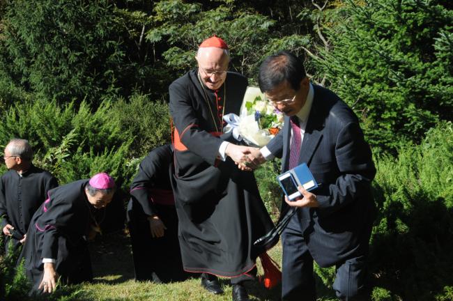 2013년 10월 3일, 수원 월드컵 경기장에 4만 5천명 신도들이 운집한 가운데 거행된 교구설정 50주년 미사를 주례하신 추기경께서는 다음 날 10월 4일 오전 9시 45분, 일찍 한국천주교회 탄생지 천진암 성지를 주한 교황대사 오스발도 파딜랴 대주교님, 수원교구장 이용훈 주교님, 이성효 보좌주교님, 참사관 카보레 몬시뇰과 함께 방문, 순례하셨다.