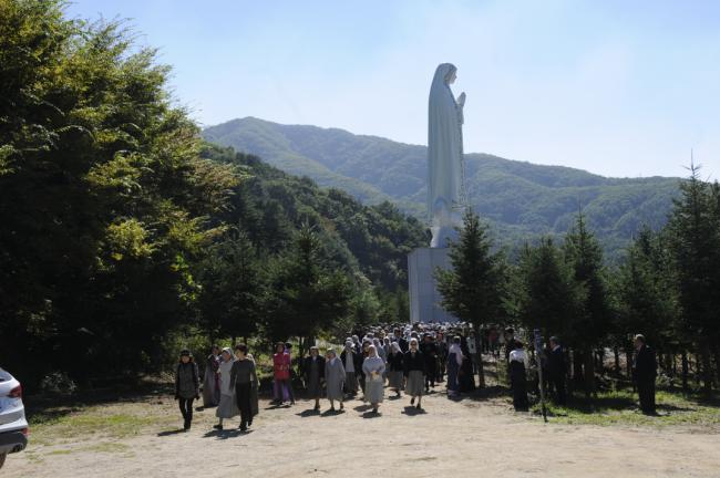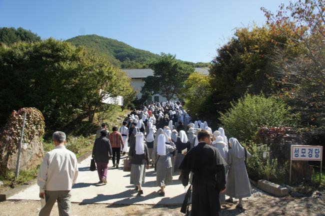 Dopo la benedizione della Statua Regina Pacis in Mundo, particularmente per la riunificazione pacifica della Corea del Sud e del Nord/ 350여명 수도자들과의 만남을 위하여, 성모성당으로 향하는 발걸음.