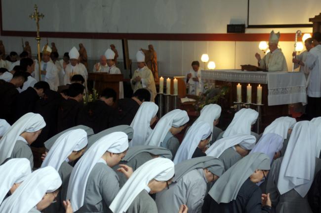 Incontra con le suore coreane. 성모성당에서 한국수도자들을 위한 미사를, 이용훈 주교님, 이성효 주교님, 심양 대주교님과 여러 사제들과 함께 봉헌하시는 추기경님
