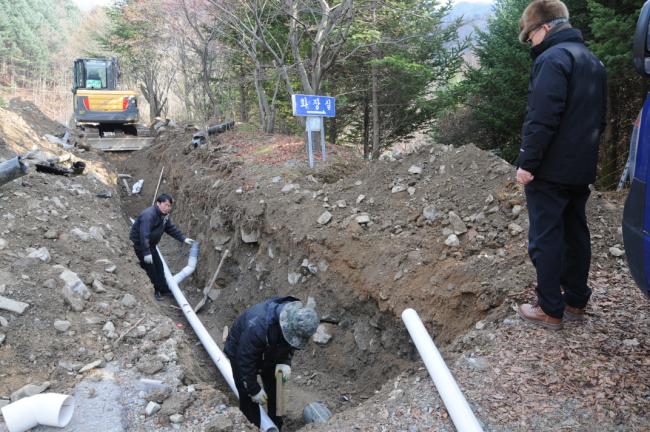 묘역입구 화장실 정화조 배수로 공사(2013.11.27)