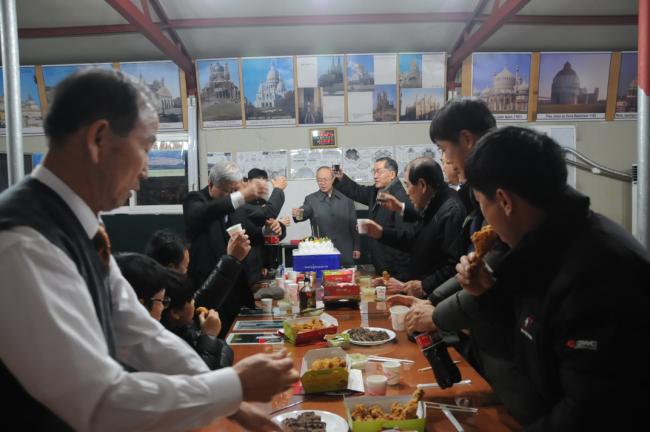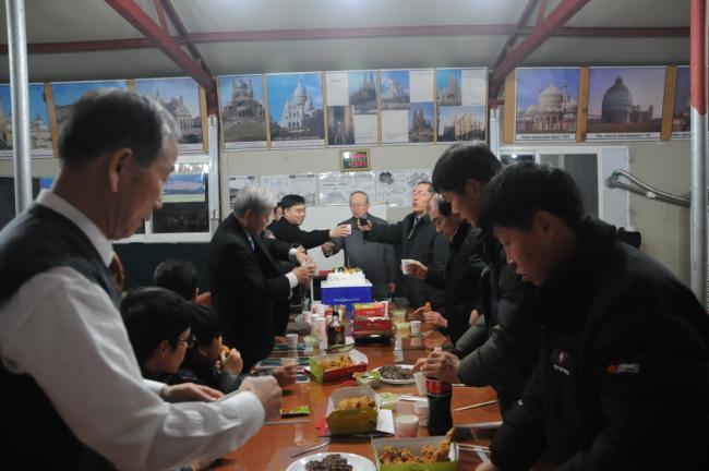천진암 성지, 성탄 밤 10시 미사 후, 성지 회장단, 창립성현 후손들, 성지직원들이 조촐하게 다과(2013.12.24)