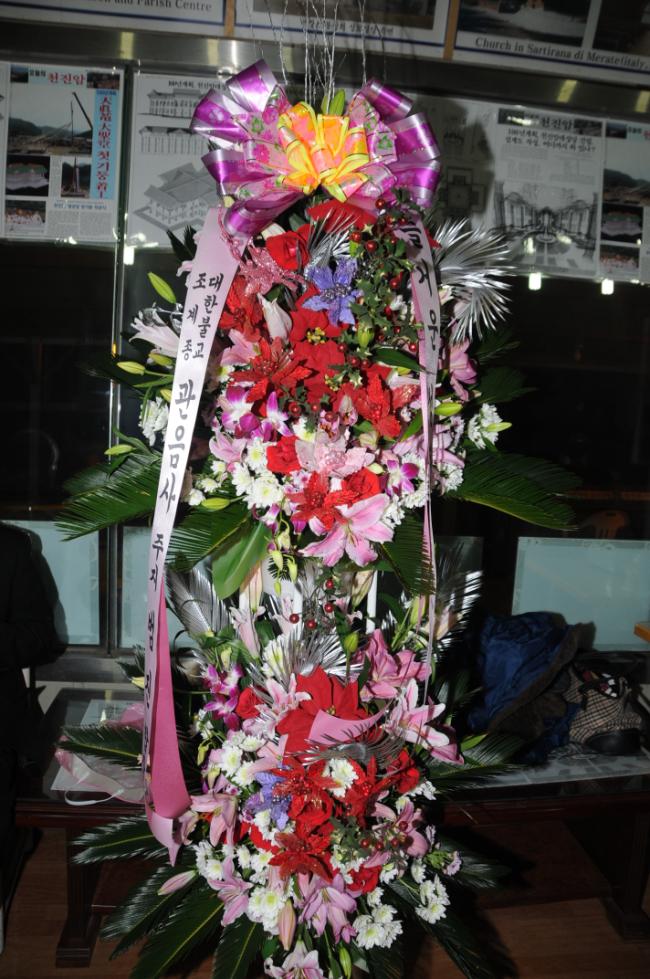 천진암 성지, 성탄 밤 10시 미사(2013.12.24), 아랫동네 관음사에서 보내온 성탄 축하 화환