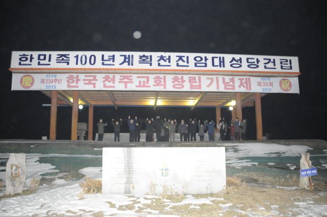 천진암 성지, 2013년 송구영신 밤 10시 미사와 밤 12시, 천진암 대성당 터에서 새해맞이 기도와 만세 12창