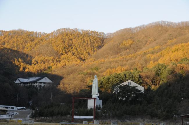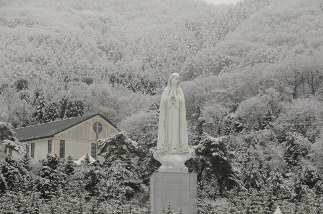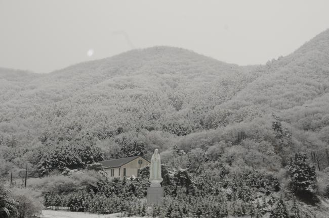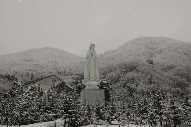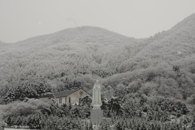 천진암 성지, 주차장 성모상 눈풍경(2013.11.27)