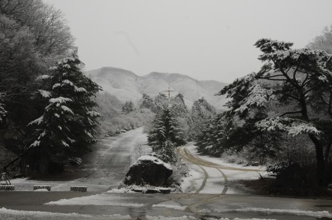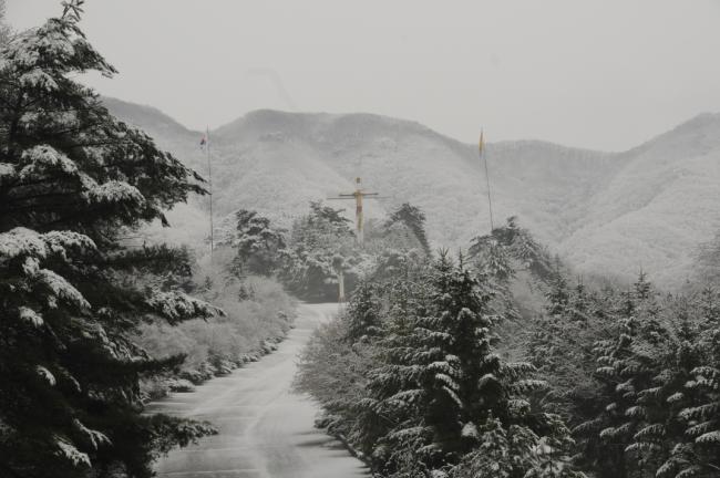 천진암 성지, 한국천주교회 창립사 연구원 도로 눈풍경(2013.11.27)