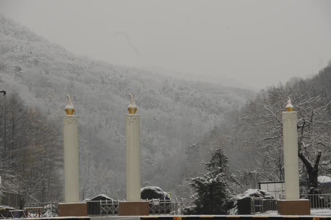 천진암 성지, 정문 입구 촛대(설중이벽야지 장촉담경) 눈풍경(2013.11.27)