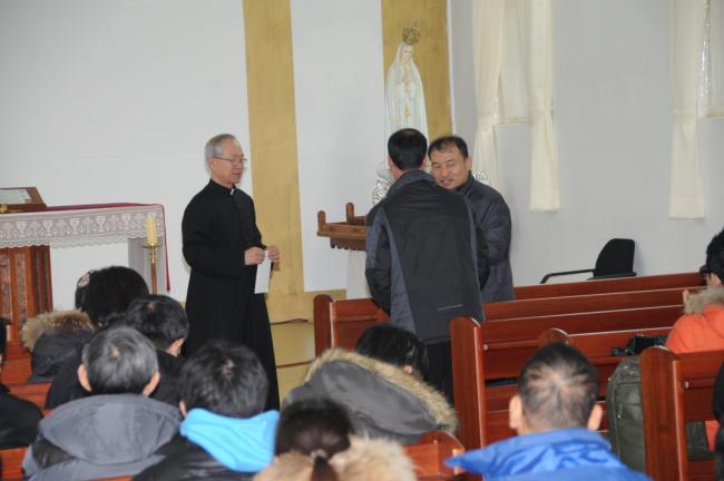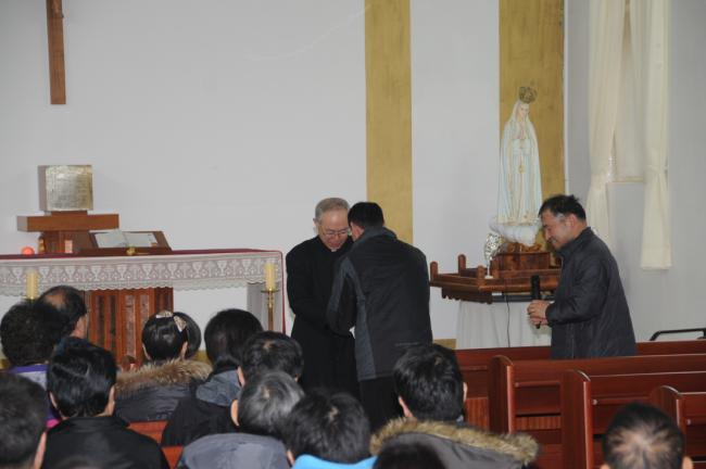 수원, 송서성당(전합수 신부), 청년회, 사목회, 복사단외 45명, 천진암 성지순례(2014.03.08), 송서성당 총회장, 성지주임 김학렬 신부에게 봉헌금 전달