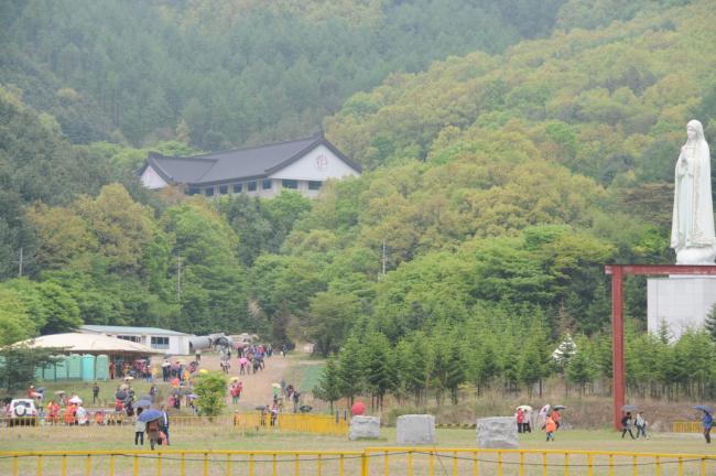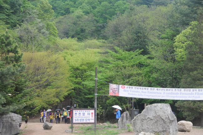 서울, 석촌동 성당 전신자 840명(곽성민 주임신부), 천진암 성지 순례시, 주일 12시 미사후, 우천으로 인하여, 천진암 박물관에서 점심식사후, 구역별로 한국천주교회 창립성현 묘 참배행렬(2014.04.27)