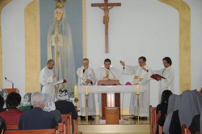 페루교구(PRELATURA De Sicuani) 주교님과 수원교구 선교사 신부 2명, 대만 화련교구 마데 수녀회 17명, 천진암 성지 순례, 낮 12시 순례객 미사(2014.04.29)