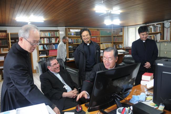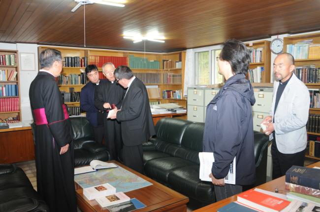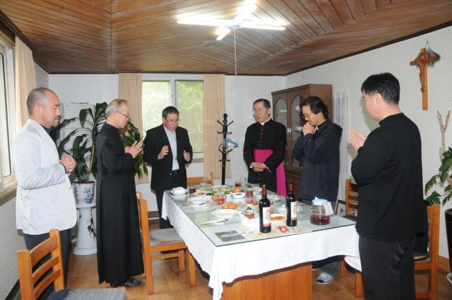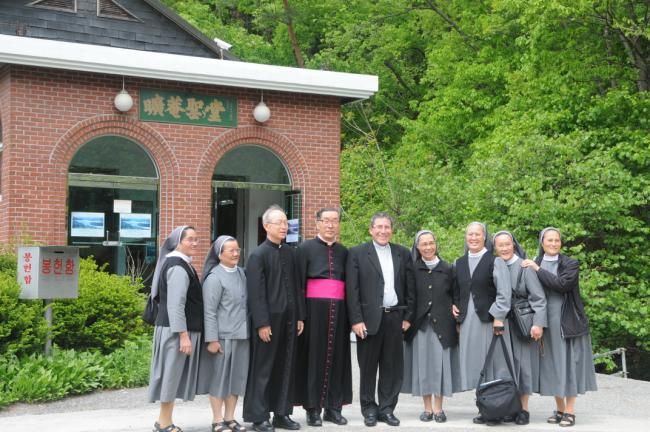 남미, 페루의 Cuzco 대교구ㅡ Sicuani 지역 代牧區長, Pedro Alberto Bustamante Lopez 주교와  쿠즈코 대교구로 외방 선교사로 파견되는 수원교구 선교사 신부 2명과, 대만 화련교구 마데 수녀회 17명, 등 일행이 거룩히 천진암 성지를 순례하며, 낮 12시 광암성당에서 미사를 올리고, 연구원에서 점심을 하였다.(2014.04.29)