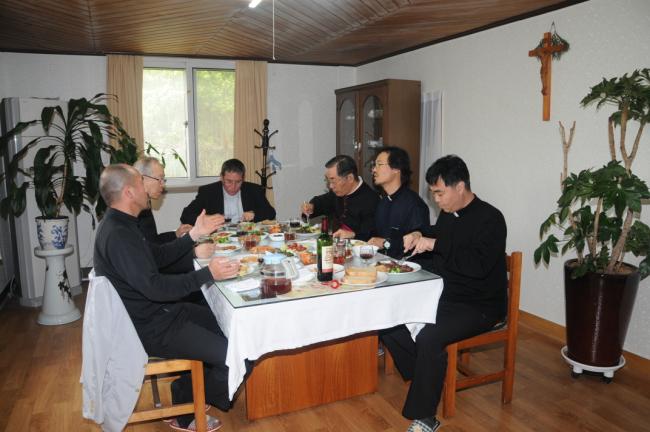 페루교구 주교님과 수원교구 선교사 신부 2명, 대만 화련교구 마데 수녀회 17명, 천진암 성지 순례, 낮 12시 순례객 미사 후, 한국천주교회창립사연구원에서 점심식사(2014.04.29)