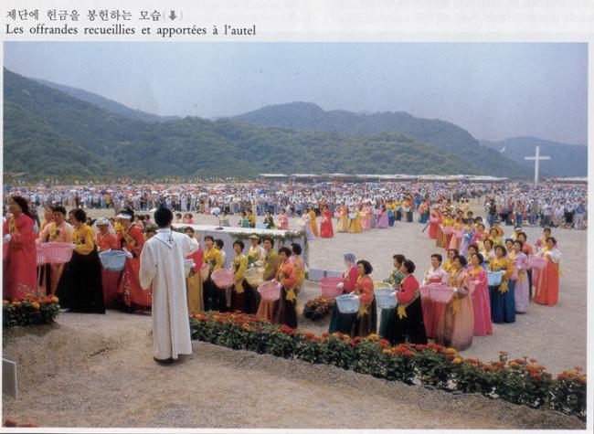 1995년 6월 25일(1779-1995)오전 11시, 한국천주교회 창립 제216주년 기념 행사시 제단에 헌금을 봉헌하는 모습.
