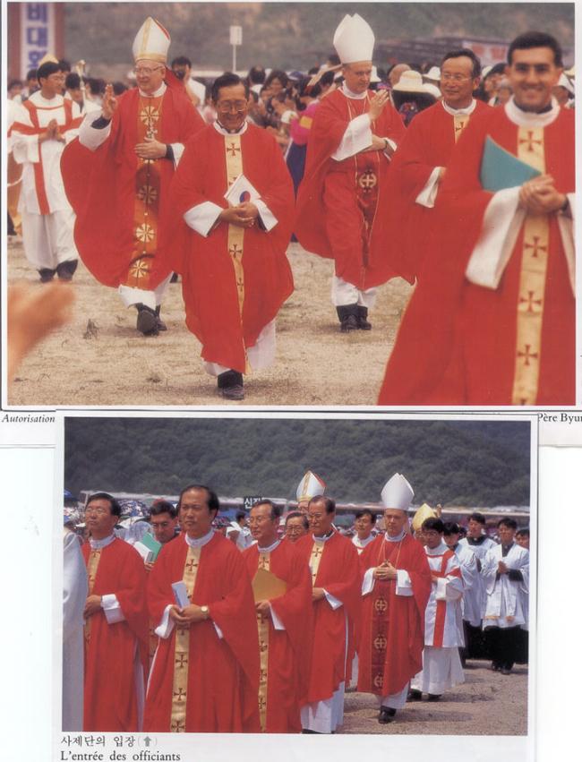 L'entree des officiants: Mgr. Angelo N. Kim, Mgr Giovanni Bulaitis, Pro-Nonce apostolique en Coree, et Mgr. Paul Cordes, vice-president du Conseil Pontifical pour les laics