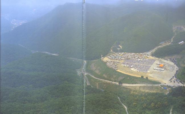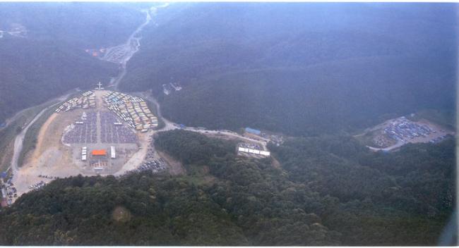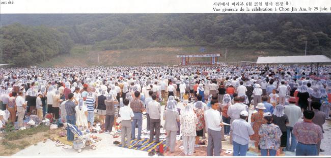 1995년 6월 25일(1779-1995)오전 11시(제216주년), 한국천주교발상지 천진암 성지의 한민족100년계획천진암대성당건립 현장에서의 기념행사를 공중에서 본 6월 25일 행사전경.