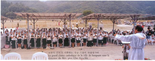 1995년 6월 25일(1779-1995)오전 11시, 한국천주교회 창립 제216주년 기념 행사시, 조규식 신부가 지휘하는 성남 가톨릭 연합성가대.