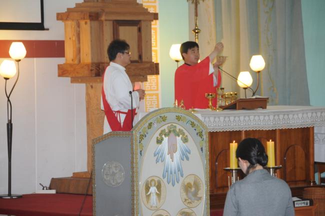 수원 상현동 성당 성서그룹원팀과 봉사자들120명(2014.05.19), 천진암 성지 순례, 낮 12시 순례객 미사